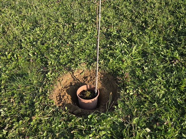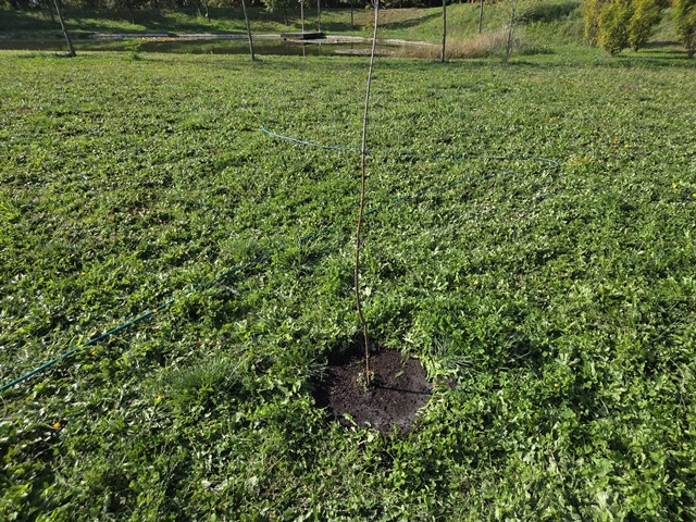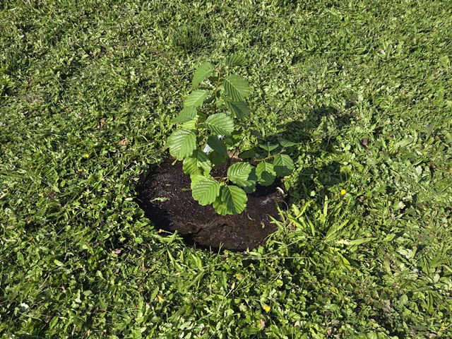 Questo è l’Ontano. Come per tutte le piante, il buco è tale per cui la pianta è leggermente sotto il livello del terreno circostante. Penso sia utile per raccogliere l’acqua piovana.