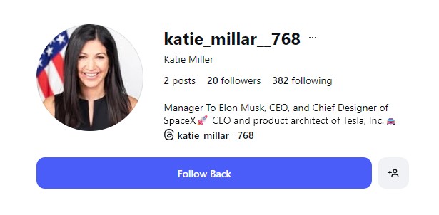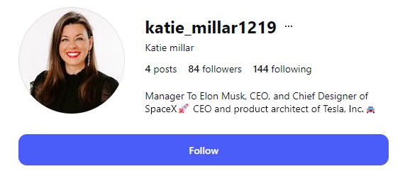 Nota di colore; “a pesonal dynamic” con Musk vuol dire che trombavano? Comunque penso che la Katie_millar_768 che mi segue sia un trappola, o una mignotta o entrambe le cose, io non la seguo.