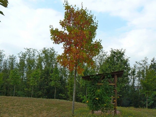 Questo acero sta dando una sfoltita alle proprie foglie per ovviare al caldo ed alla mancanza di acqua nel terreno. Una forma di finto autunno, le foglie ingialliscono perchè le radici richiamano la linfa come succede all’approssimarsi dell’inverno. Resteranno – SPERO – foglie sufficienti per garantire la sopravvivenza all’estate che si annuncia ancora lunga e torrida. E’ successo anche lo scorso anno e ne ho per il cazzo di andare a vedere se ho scritto le stesse belinate – inventate di sana pianta, tuttavia plausibili. Succede ad altri aceri. I carpini invece stanno soffrendo ben di più, prevedo che 4 (su dieci di quelli in osservazione) non supereranno l’estate, nonostante le innaffiature che più di tanto non possono essere generose perchè l’acqua va risparmiata e ci sono tante altre piante da mantenere. Le querce invece sembrano non patire, tutte tranne un paio davvero in difficoltà.