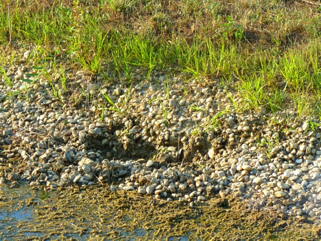 Sono tornati i cinghiali. Hanno fatto un sondaggio nella sponda emersa ma poi evidentemente hanno desistito per ragioni che mi sono ignote, probabilmente ritorneranno forse con intenzioni più determinate per vedere se sotto la ghiaia e la terra ci sia un cazzo di tubero.