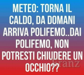 Da qualche tempo una persona che frequento per questioni associative, mi ha evidentemente incluso in una lista su WhatsApp. Ho iniziato a ricevere con scadenza giornaliera diverse “cose spiritose“. Si tratta di quell’umorismo fatto di vignette che vorebbero essere ironiche, pungenti, ammiccanti, politicamente impegnate. Lo stile è tipo questa che mostro qui a fianco. Ma hahaha, a me fa ridere meno di un pico cazzo, in più tocca un argomento sul quale sono sensibile. Ho risposto come segue: “Immagino che il nome Polifemo sia stato preso da uno dei soliti siti pacacca che trattano la Meteorologia come lo fa un rotocalco di basso livello per il popolino. Che disdetta che poi questa robaccia venga ripresa e diffusa anche da organi di stampa che si definiscono seri. Non esiste nessun Polifemo per la Meteorologia seria, ufficiale. Non esiste alcun nome di fantasia per le alte pressioni e tantomeno per le ondate di caldo. E’ solo qualche furbo che la spara grossa per attirare tonni sul proprio sito.”