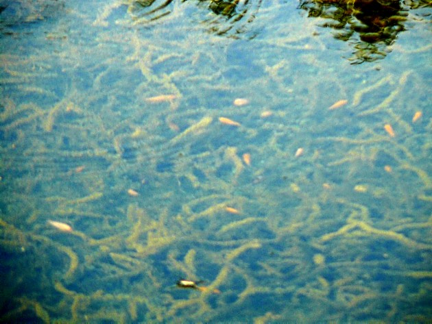 Gli avanotti delle Carpe, leva 2017. In questa orrenda foto che sono riuscito a scattare se ne vedono una decina, ma in realtà sono molti, molti di più. Ecco perchè stamattina c’era Gastone. Credo sia un buon segnale, almeno la qualità dell’acqua è buona per loro.