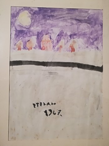Questo mese festeggio il cinquantesimo anniversario della mia carriera da pittore. Che è terminata quando la vernice di questa roba si è asciugata. Quella nel quadro era la casa dei miei nonni di Asti, Settembre era il mese che passavo con loro, quindi 50 anni fa. Mia madre dipingeva benino quando era piccola. Avevo visto che aveva disegnato la casa dei genitori, allora io, spinto da chissà quale estro, ho impugnato il pennellino ed ho prodotto quella schifezza. Va BENE, avevo 6 anni. Ero un bambino sicuramente rompicoglioni e per farmi stare qualche minuto impegnato hanno provato a verificare il mio eventuale talento artistico. Manco per il belino; anche oggi, se mi trovo uno strumento di disegno in mano, produco lo stesso artefatto, come se il mio neurone artistico e raffigurativo fosse rimasto allo stato infantile. Ho comunque conservato il dipinto (anzi, lo hanno conservato i miei genitori) poi ne sono rientrato in possesso ed ora in occasione del cinquantenario, l’ho fotografato.