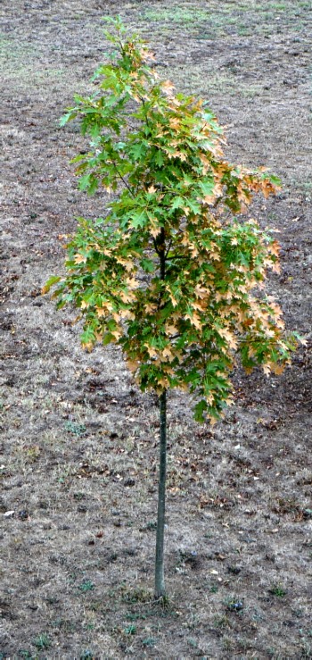 Intanto c’è vento a raffiche. Da 0 ad una  ventina di nodi in pochi secondi, forse un briciolo di più, poi quasi calma. Questo è un acero saccarino che non ha i colori autunnali, bensì i colori della sventolata rovente dei primi di Settembre, le foglie cedono troppa umidità di quanto non riescano a ricevere da ramo e seccano in poche ore, poi rimangono li e con il vento iniziano a staccarsi.