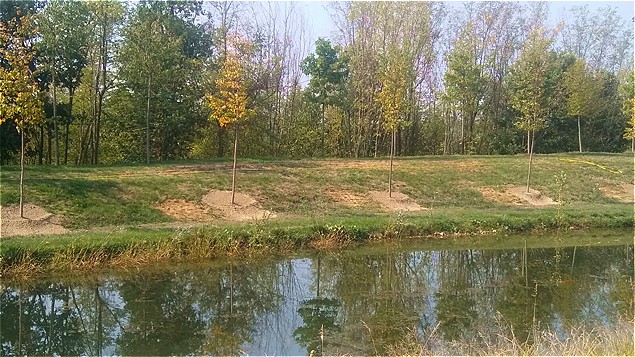 Sezione della riva orientale della Pozzanghera con i nuovissimi Tigli. Anche per questi si presenta lo stesso problema di protezione, ma sticazzi a ripetizione devo ancora definire un piano perchè le reti delle acacie sono ancorate al terreno integro e durerrimo solidamente con dei ganci, ma intorno ai tigli c’è un metro abbondante di terra mollissima e la rete starebbe in piedi per miracolo. Ci devo pensare.
