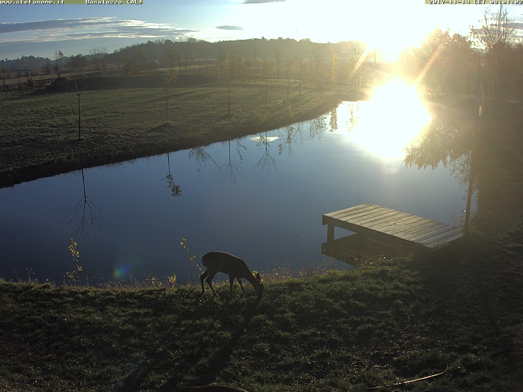 Perchè a Basaluzzo la temperatura secondo ARPA sembrerebbe essere andata sotto lo zero per la prima volta in questo inverno, sebbene di pochissimo e per poco tempo subito prima dell’alba. Di brina non ne ho vista, in compenso la webcam ha fotografato questo grosso cane verderame alsaziano mentre annusa i bruchi.