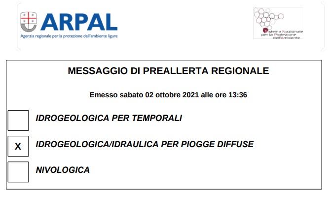 La “preallerta” di cui ignoravo l’esistenza fino a pochi minuti fa, credo sia un sistema per avviare anticipatamente l’ansia delle persone metereopatiche, o delle persone che si spaventano per la pioggia, o di quelle che negli anni passati hanno già perso l’auto o la casa o il negozio, portati via da una esondazione lampo. Se non ho capito male, il sistema di protezione civile è informato dell’esistenza di una preallerta ma non deve fare nulla di pratico. Può però iniziare a ricevere telefonate di gente pre allarmata già entrata nel panico preventivo di chi vive in zone a rischio.