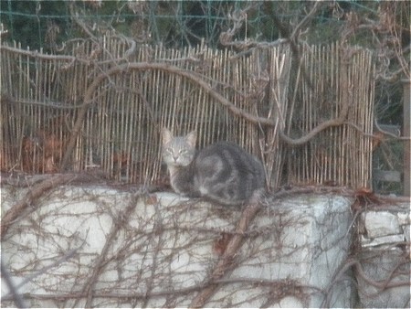 In effetti quando arrivo a casa Miriam non c’è e l’animale attende qualcuno pazientemente su un muretto di confine. Su questo muretto la nostra gatta passava delle ore, si vede che il posto piace ai gatti. La bestia appena mi vede mostra tutta la sua aggressività, strusciandosi alle mie caviglie. Non è un gatto randagio, è ben nutrito, il pelo è perfetto, è un maschio di non più di un paio di anni di età. Miagola ed è abituatissimo agli umani. Ora che ci penso, se non sbaglio lo avevo visto qualche tempo fa nel giardino dei vicini, rimasti da poco orfani dei loro adorabili cani, entrambi morti di serena vecchiaia nel giro di pochi mesi. Ed avevo visto anche una ciotola con roba da mangiare. I miei vicini sono attualmente assenti, torneranno a breve, ed ecco che la bestiaccia ha subito cercato compagnia ed affetto nelle vicinanze.