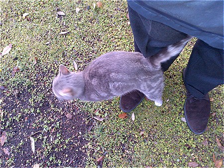 Adesso bisogna aspettare che lui decida cosa fare; può decidere di andarsene spontaneamente, può decidere di andare e tornare a suo piacimento e di condividerci con i nostri vicini, potrebbe installarsi nel cortile in pianta semi-stabile e voler entrare in casa. E per far questo potrebbe anche mettersi a miagolare di notte quando dovesse freddo e dovesse piovere. Non sarebbe un problema dargli del cibo; certo una ciotola di croccantini all’aperto attira piccioni, corvi, merli, ricci e formiche e altri gatti, il cortile e piccolo e rischia di diventare sovraffollato, ma chissenefrega. Sto già pensando di comprare una cuccia per cani di piccola taglia da tenere in cortile e dotarla di una coperta a guisa di giaciglio, ma non è detto che il gatto gradisca queste attenzioni. Potrei mettere la cuccia vicino alla caldaia in modo che prenda un po’ di calore…