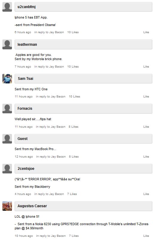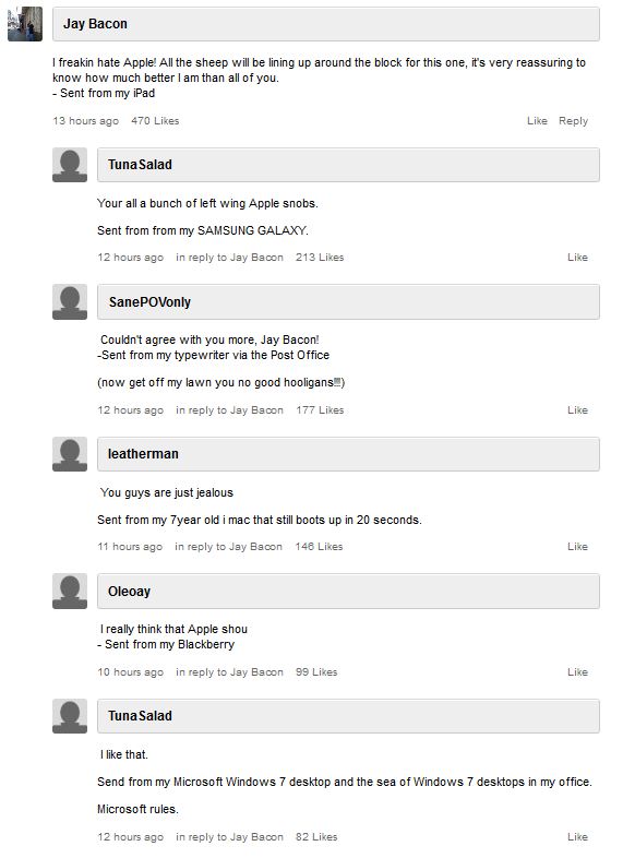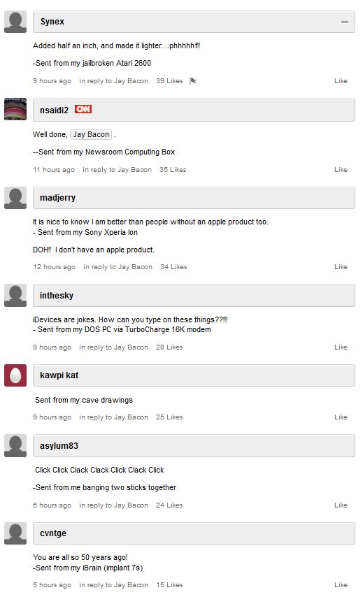 … on the CNN website there’s the news about the release of the Iphone5. Below, readers’ comments. Want to save this collection of hilarious posts!