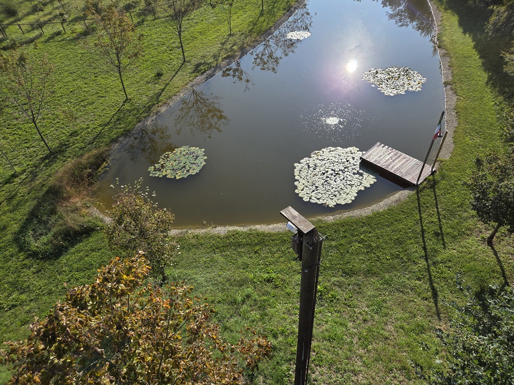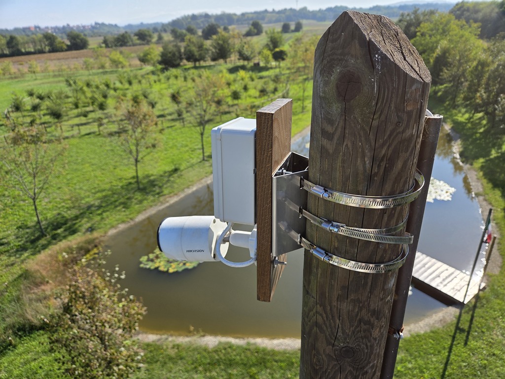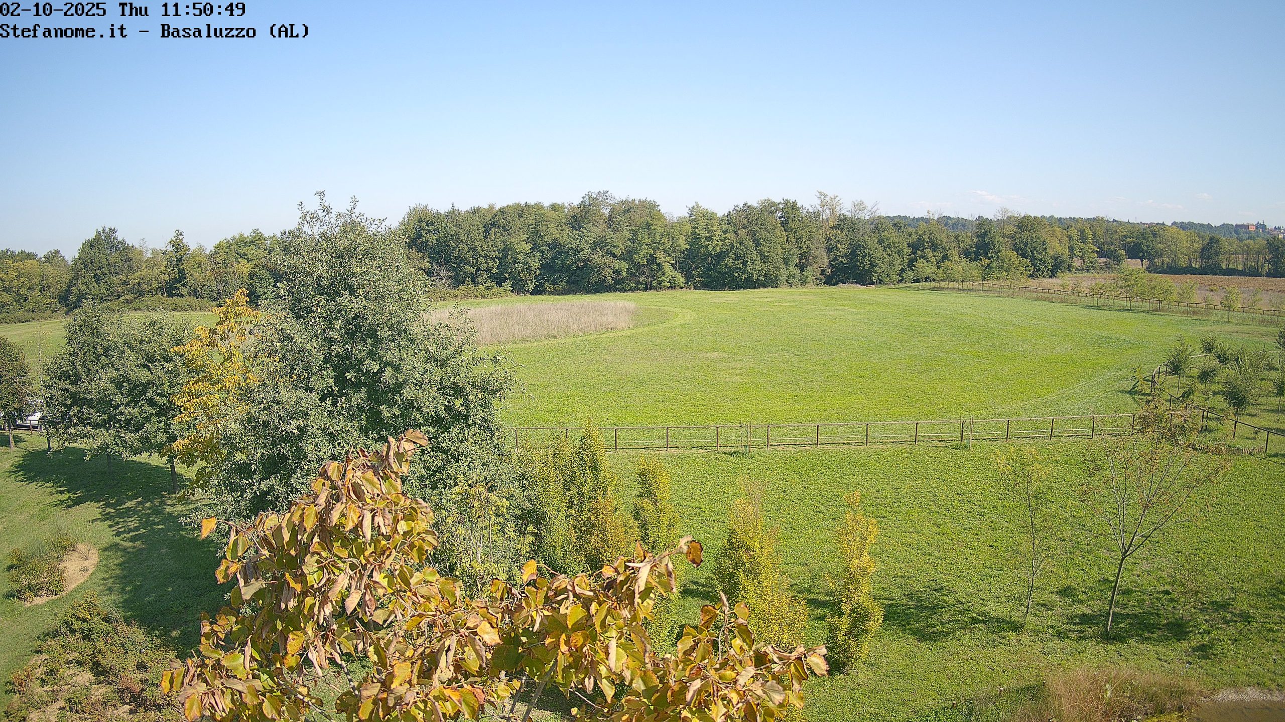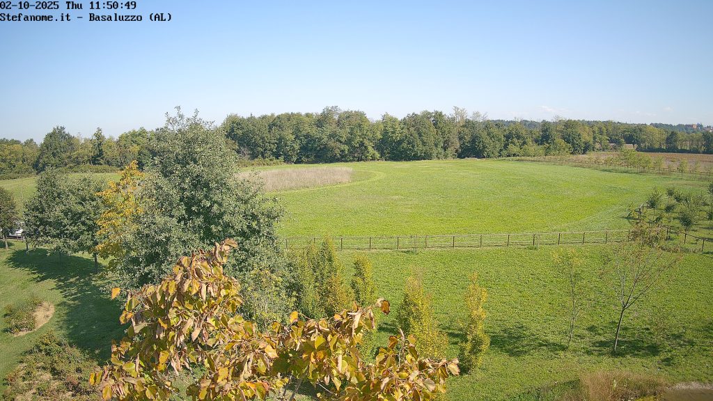 Ho fatto le cose con calma, senza ondeggiamenti o crampi alle gambe, un quarto d’ora e la webcam del palo adesso inquadra parte del pratone. Il tiglio in primo piano di cui si vedono le fronde crescerà, ma eventualmente basterà spuntare qualche rametto se dovesse ostruire troppo la visuale.