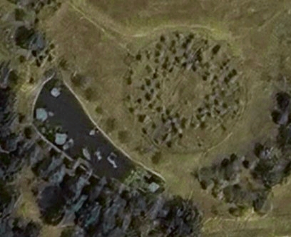Dettaglio dal satellite; gli alberelli del cerchio inutile iniziano a vedersi. Nella Pozzanghera si vedono le cinque ninfee più altre isole di alghe galleggianti