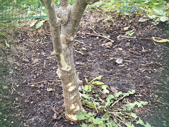 O non lo avevo notato prima, oppure il roditore che si è infilato nel recinto ha ripetutamente morsicato la corteccia del giovane alberello. Danni estesi ma la piantina non dovrebbe essere a rischio, almeno lo spero.