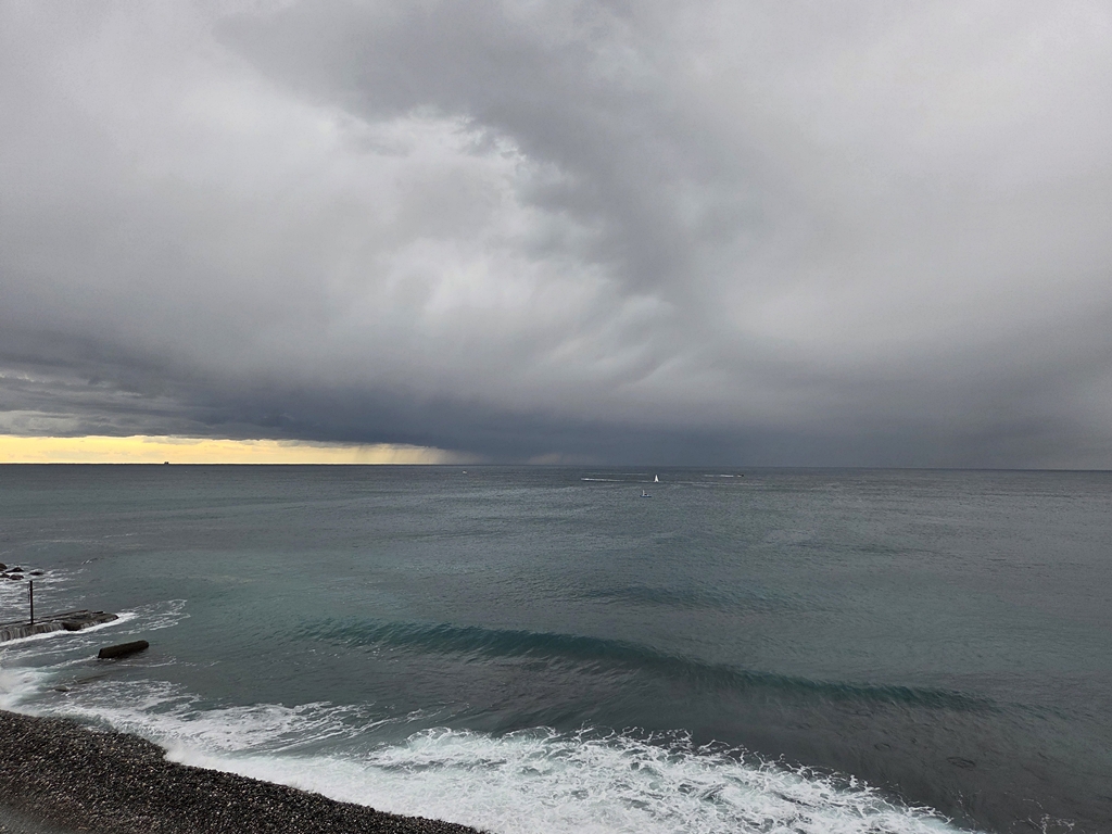 Il nuvolone nero ed inoffensivo è diventato un temporale sul mare ed ha puntato verso la costa.