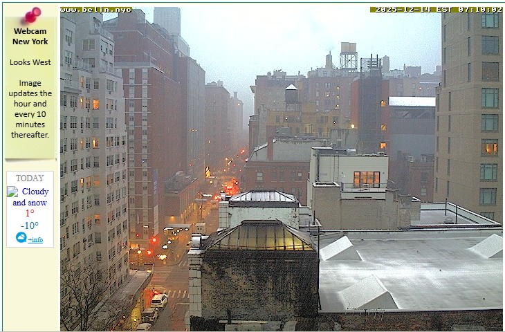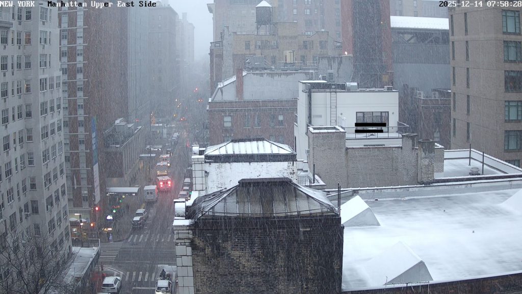 Intanto a New York la mattina inizia con un po’ di neve. La minima prevista fa pensare che non ci dovrebbero essere problemi di pioggia, ma gli accumuli sono modesti.