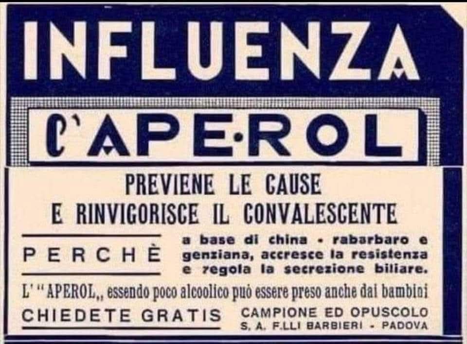 Ho imparato oggi da dove viene il nome di questo intruglio che oggi è tremendamenre di moda per comporre il cosidetto “spritz” . Peccato non avere in casa questo liquore che beveva mio nonno, non ricordo di averlo mai visto con l’influenza. C’è da dire che poi è morto lo stesso e dunque a tanto non è servito.