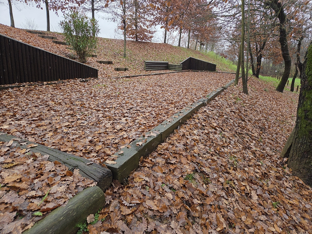 Il campo da bocce al momento è praticabile con foglie. Secondo me ci si potrebbe giocare, forse non si vedrebbe il boccino, magari mettendo una di quelle bandierine che servono per localizzare i getti degli innaffiamenti a prato, chissà.