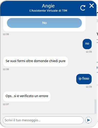 Ho provato a chiedere all’intelligenza artificiale di TIM qualcosa sull’IP fisso. Ecco la risposta.