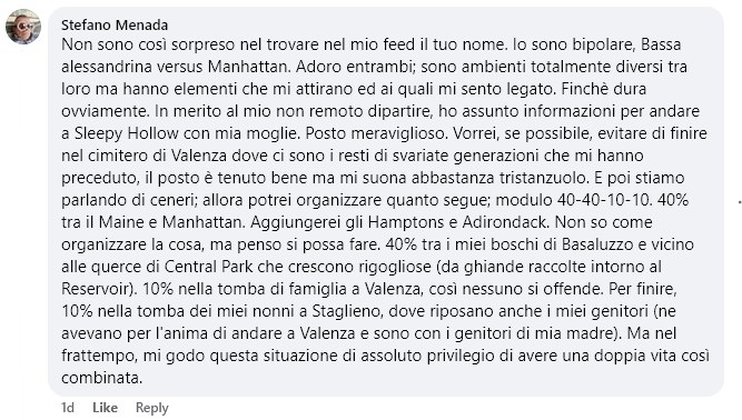 Mi ha scritto dicendo ma che bello un altro alessandrino che vive in USA e qui e la e su e giu e sti cazzi in salmì.