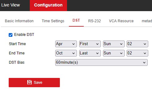 La scorsa notte durante una veglia da età avanzata, mi sono accorto che tutte le webcam erano indietro di un’ora. Il rincoglionimento geriatrico mi ha rallentato in tutti questi giorni nel rendermi conto dela discrepanza. Alle 2 del mattino ho impiegato diversi minuti per capire quale era l’origine del problema; nel menu di configurazione delle HIK c’è la sezione dedicata al Day Saving Time, ovvero l’Ora legale del cazzo. Insomma la macchina dovrebbe aggiornare automaticamente l’ora in base al calendario dell’ora legale.