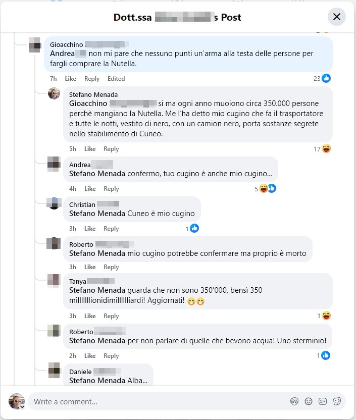 I social sono dei luoghi dove tutti posso scrivere e scambiare opinioni. Per esempio, nella navicella spaziale che sta facendo il giro della Luna si è visto un barattolo di Nutella che navigava in assenza di gravità. Nessuno viene costretto a commentare, le opinioni possono essere tante, nel bene e nel male.