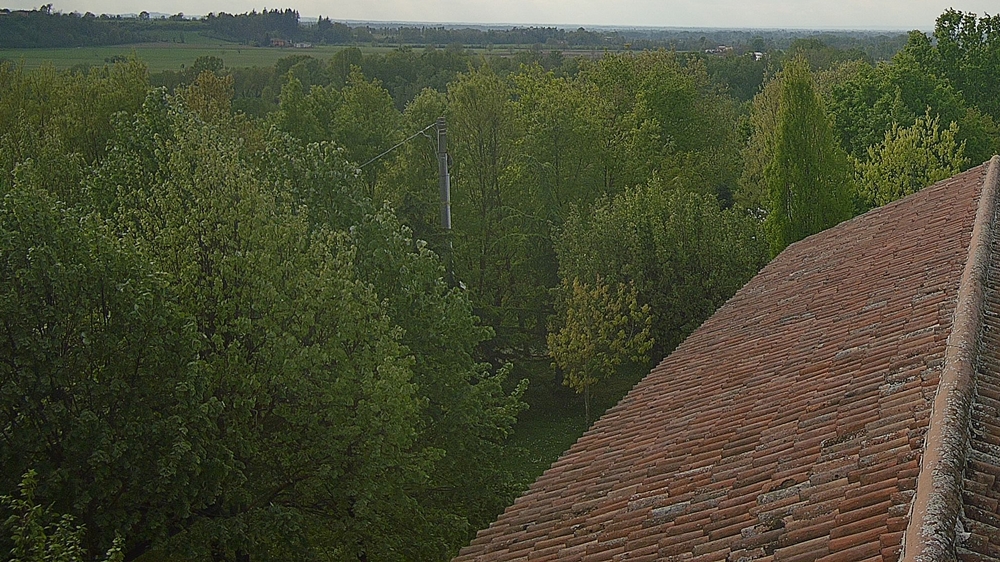 In questo ritaglio di una immagine della webcam, nella sinistra si vedono tre tigli come sono adesso, sono più alti del tetto di casa, gli stessi che nella foto precedente sono degli schitimiri alti tre metri o poco più.