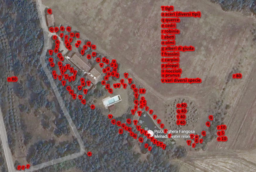 Faccio l’appello; nella ricostruzione ne ho sicuramente dimenticati diversi; dove viene indicato un numero, non rappresenta il totale degli alberi messi, ma il totale di quelli sopravissuti che vivono oggi, meglio, una ragionevole stima di quelli che stanno bene. Direi che ne sono morti tra il 20 ed il 30 percento del totale.