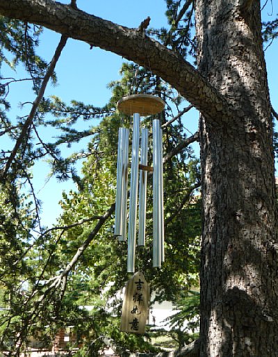 Nooo; il vicino più vicino è a non meno di 200 metri di distanza, dunque non potrebbe sentire nemmeno utilizzando un potente apparecchio acustico. In compenso mi delizia con il nitrire dei suoi cavalli; fa tanto prateria selvaggia ed è piacevole anche perchè i cavalli sono di poche parole. Sento anche mucche e galline in lontananza, l’immancabile rintocco delle campane. In primavera si sentono i caprioli nei loro richiami d’amore. I cinghiali sono silenziosi. Guarda; il wind chime non disturba i suoni della natura, anzi li integra con dei leggeri tocchi melodiosi, ma solo se c’è vento e dunque sempre in concerto con lo stormir di fronde, anzi degli Olmi, nido alle ghiandaie.