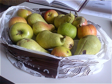 Nel FDT (fazzoletto di terra) di Basaluzzo non ho piantato alberi da frutta. Ci sono però alcuni alberi di pere, mele e prugne messi a dimora chissà quanto tempo fa ed emersi dai rovi durante la Grande Pulizia del Bosco. Sono frutta di qualità ormai in disuso. Non sono le grandi mele dei supermermercati perfette, senza un graffio, della stessa dimensione, colore, sapore.