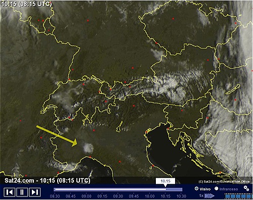… ed è li immobile da almeno 2 ore. Sarà mica qualche cosa di alieno, una minaccia per gli abitanti del novese, un avvertimento ? Oppure una scia chimica ? Anzi invece di una scia, vista la forma mi pronuncerei per un “tondo chimico”, un “pallone chimico” ?