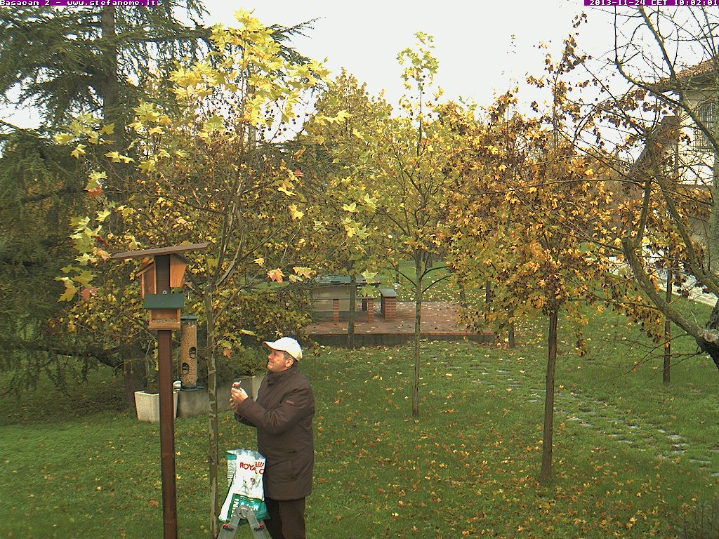 Non ho guardato volutamente l’orologio per far si che potessi essere immortalato mentre alimentavo le mangiatoie degli uccelli, ma sono rimasto comunque immortalato, nella foto oraria delle 10 di questa mattina. Così i posteri sapranno che io avevo installato una mangiatoia e sticazzi.