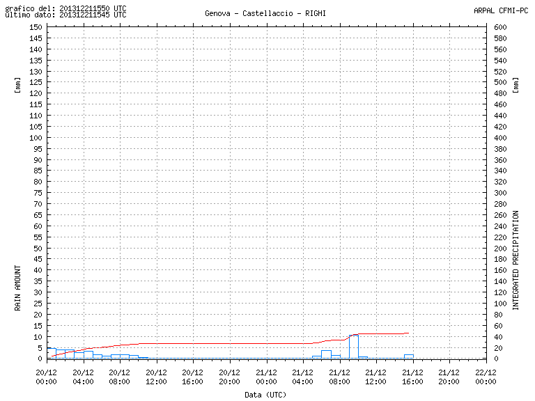 Non sono più abituato a passare i finesettimana a Genova. Da questa mattina sembrerebbero caduti quasi 15 millimetri di pioggia. Secondo me ne sono caduti di più. Arpal sottostima.