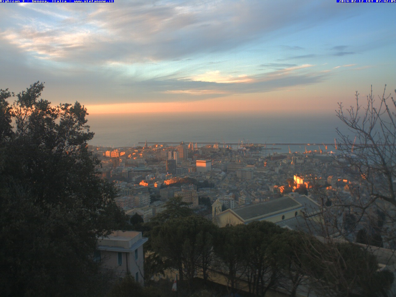 Ho salvato questa foto mattutina perché il sole sfiorava in quel momento le case più alte di downtown Genova. Altro che Manhattan.