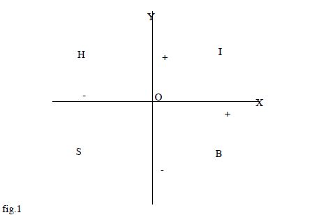 Che uno appartenga al tipo eremita od al tipo mondano, deve comunque trattare con la gente, anche se con diversa intensità. Ogni tanto anche gli eremiti incontrano persone. Inoltre ci si pone sempre in relazione con gli esseri umani anche evitandoli. Ciò che avrei potuto fare per un individuo o per un gruppo, e che non ho fatto, rappresenta un «costo-opportunità» (cioè un guadagno mancato od una perdita) per quella particolare persona o particolare gruppo. La morale della favola è che ognuno di noi ha una sorta di conto corrente con ognuno degli altri. Da qualsiasi azione, o non azione, ognuno di noi trae un guadagno od una perdita, ed allo stesso tempo determina un guadagno od una perdita a qualcun altro. I guadagni e le perdite possono essere opportunamente illustrati da un grafico, e la figura 1 mostra il grafico base utilizzabile per questo scopo.