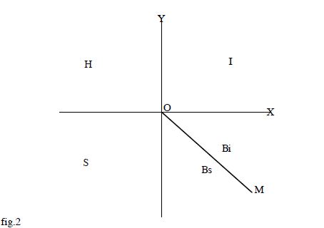 Tuttavia i banditi perfetti sono relativamente pochi. La linea OM divide l’area B nelle due sub-aree Bi e Bs e la grande maggioranza dei banditi si colloca in qualche punto di queste 2 sub-aree. I banditi che occupano l’area Bi sono coloro che procurano a se stessi guadagni maggiori delle perdite che causano agli altri. Tutti i banditi che occupano una posizione nell’area Bi sono disonesti con un elevato grado di intelligenza e quanto più la loro posizione si avvicina alla parte destra dell’asse delle X, tanto più tali banditi partecipano alle caratteristiche della persona intelligente. Sfortunatamente gli individui che occupano una posizione nella area Bi non sono molto numerosi. La maggior parte dei banditi si colloca in effetti nell’area Bs. I banditi che rientrano in questa area sono individui le cui azioni procurano loro vantaggi inferiori alle perdite causate agli altri. Se qualcuno ti fa cadere e rompere una gamba per scipparti 10.000 lire o ti causa danni all’automobile per mezzo milione di lire per rubarti una radiolina dalla quale lui ricaverà sì e no 30.000 lire, se qualcuno ti tira un colpo di pistola e ti ammazza solo per trascorrere una notte in compagnia di tua moglie a Monte Carlo, possiamo star certi che non si tratta di un bandito «perfetto». Anche utilizzando i suoi parametri per misurare i suoi guadagni (ma usando i nostri parametri per misurare le nostre perdite) egli cadrà nell’area Bs molto vicino al limite della stupidità pura.