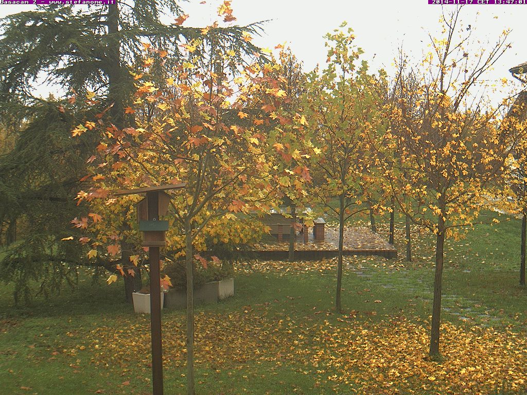 Fotografia cliccabile per goderne appieno i particolari cromatici. Il contrasto tra l’erba verde e le foglie gialle, e poi questa foto che ricompare tutti gli anni più o meno in questo periodo.