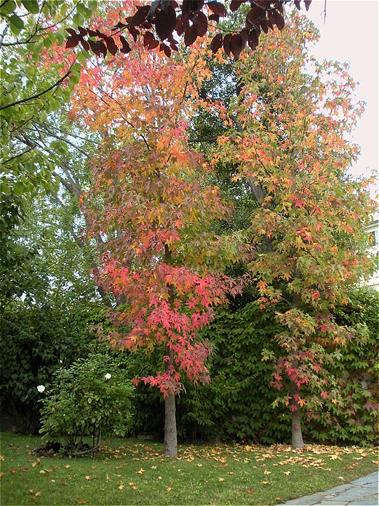 Bollettino dei Liquidambar aggiornato a oggi. Sempre più belli. Mi colpisce soprattutto il fatto che ci siano, una a fianco dell’altra, foglie rosse, gialle e verdi contemporaneamente. Perchè una foglia diventa rossa e quella a fianco è ancora come in piena estate ? Chi lo ha deciso ? E’ una scelta casuale della pianta o risponde all’anamnesi univoca della singola foglia. Lo spessore del rametto apicale ? La condizione della equivalente radice ? Dipende dal giorno in cui, mesi prima, la foglia appena nata ha iniziato a svolgersi al sole. Sono queste domande del cavolo ? No, sono del Liquidambar.