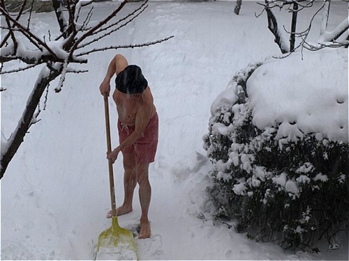 … il sindaco ha invitato i cittadini a NON fare gli spiritosi facendosi filmare mentre, in costume da bagno, si gettano nella neve che ha raggiunto più di un metro di accumulo. Capisco il sindaco che ha visto molta gente arrivare al pronto soccorso con problemi vari derivanti da questa pratica, ma capisco anche chi si getta nella neve. Al Righi, molto più modestamente, il mio cimento invernale si limita a spalare quei pochi centimetri che si accumulano in occasione delle nevicate sempre più rare.